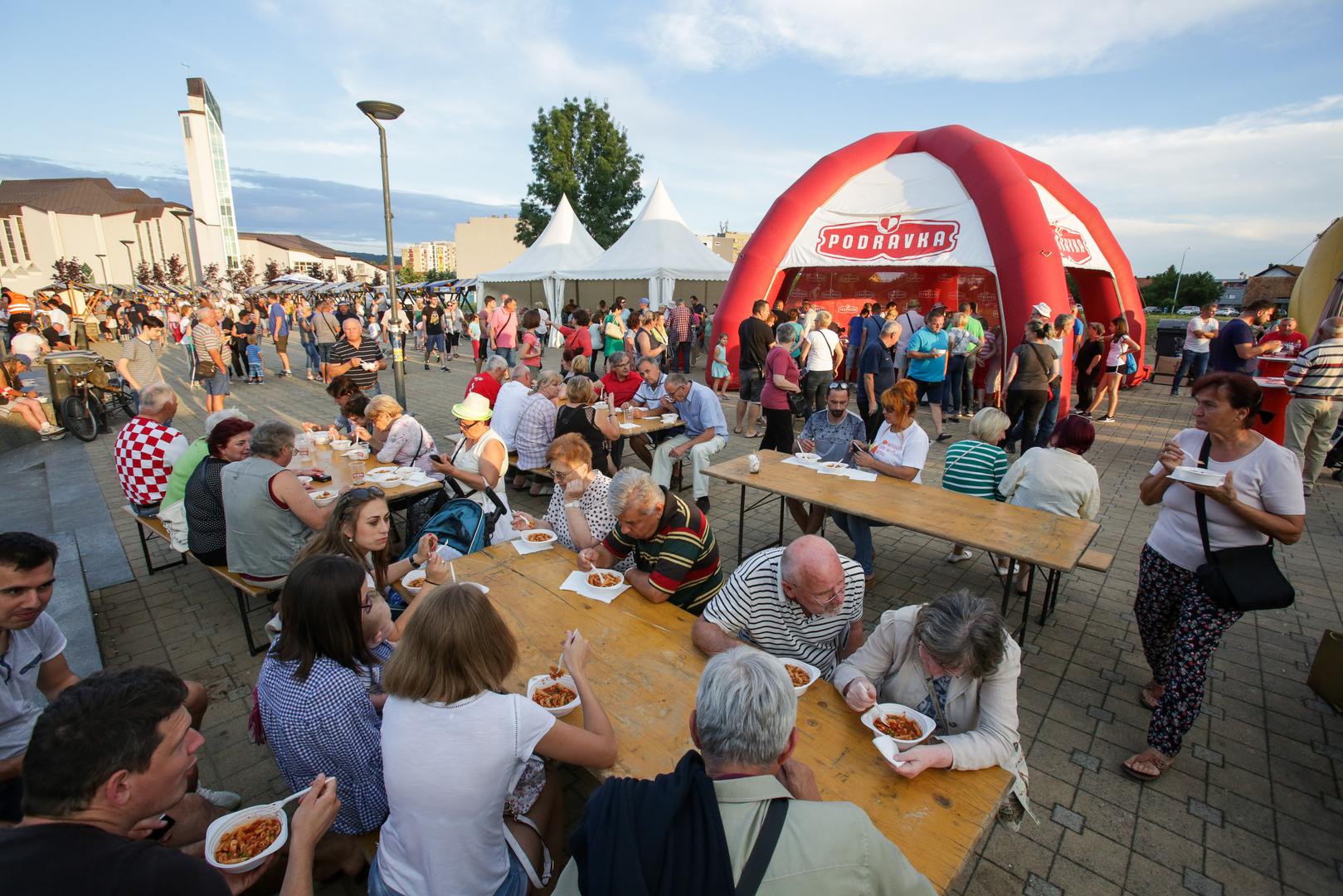 Nakon roštiljade u kojoj su uživali svi posjetitelji, slijedio je gastro show Podravkinih kuhara koji su u golemoj tavi pripremili 800 porcija tjestenine s piletinom, graškom i pireom od rajčice.