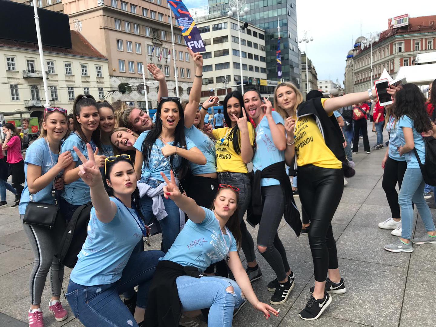 10.05 – Učenici 4b Upravne škole dobro raspoloženi pjevaju megahit "Svijet voli pobjednike".