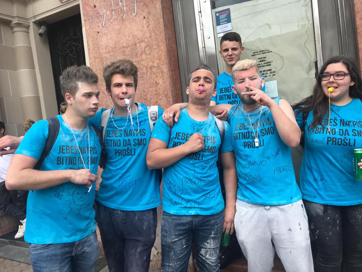 10.25 – Učenici 3. gimnazije i Prometne škole također su odlično raspoloženi, a na majici im piše "Mi šoferi prave smo barabe, koja ne da neka ide pješke". Kažu da će feštati do kraja tjedna, odmora nema, zabava do kraja.