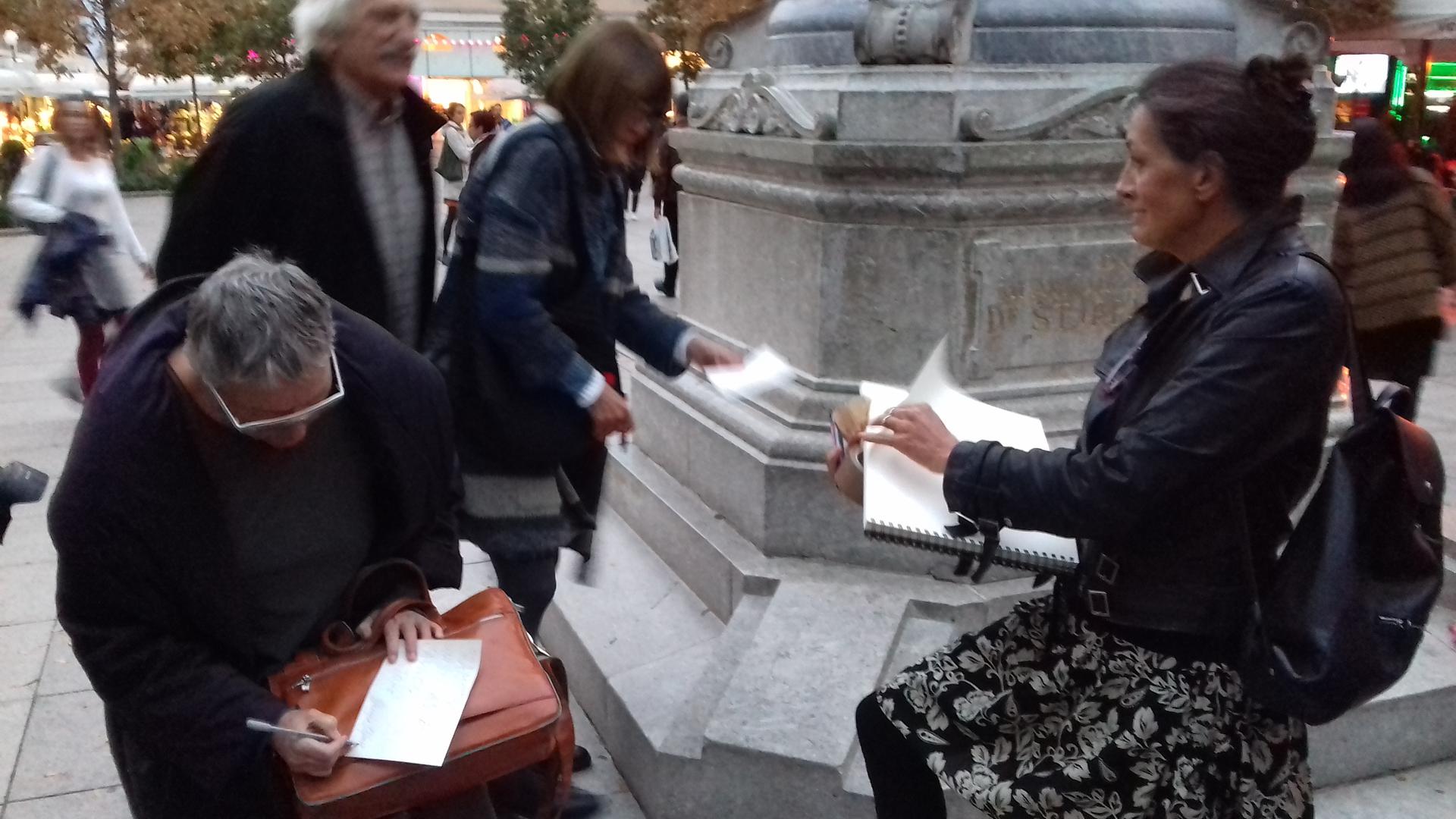 Okupili su se, među ostalima, Saša Šimpraga, Miko Gamulin, Urša Raukar i zastupnik Dominik Etlinger. Prozivaju Grad da je nedopušteno uzurpirao javni prostor, a građani u prolazu također negoduju zbog izgradnje nove terase. Poruka okupljenih jest da će se boriti da projekt terase ne zaživi.