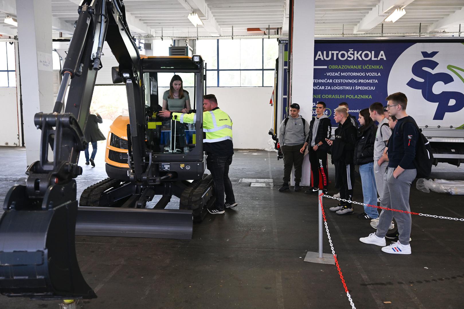 Potencijalni bageristi u redovima su čekali ne bi li na štandu zagrebačke Škole za cestovni promet testirali preciznost te pokušali manevrirati bagerom i srušiti teniske loptice s poredanih cjepanica. Opojni mirisi pereca, kiflica i pletenica širili su se pak sa štanda Prehrambeno-tehnološke škole gdje budući pekari nastoje zainteresirati potencijalne kolege, no statistika, kažu, nije dobra.
