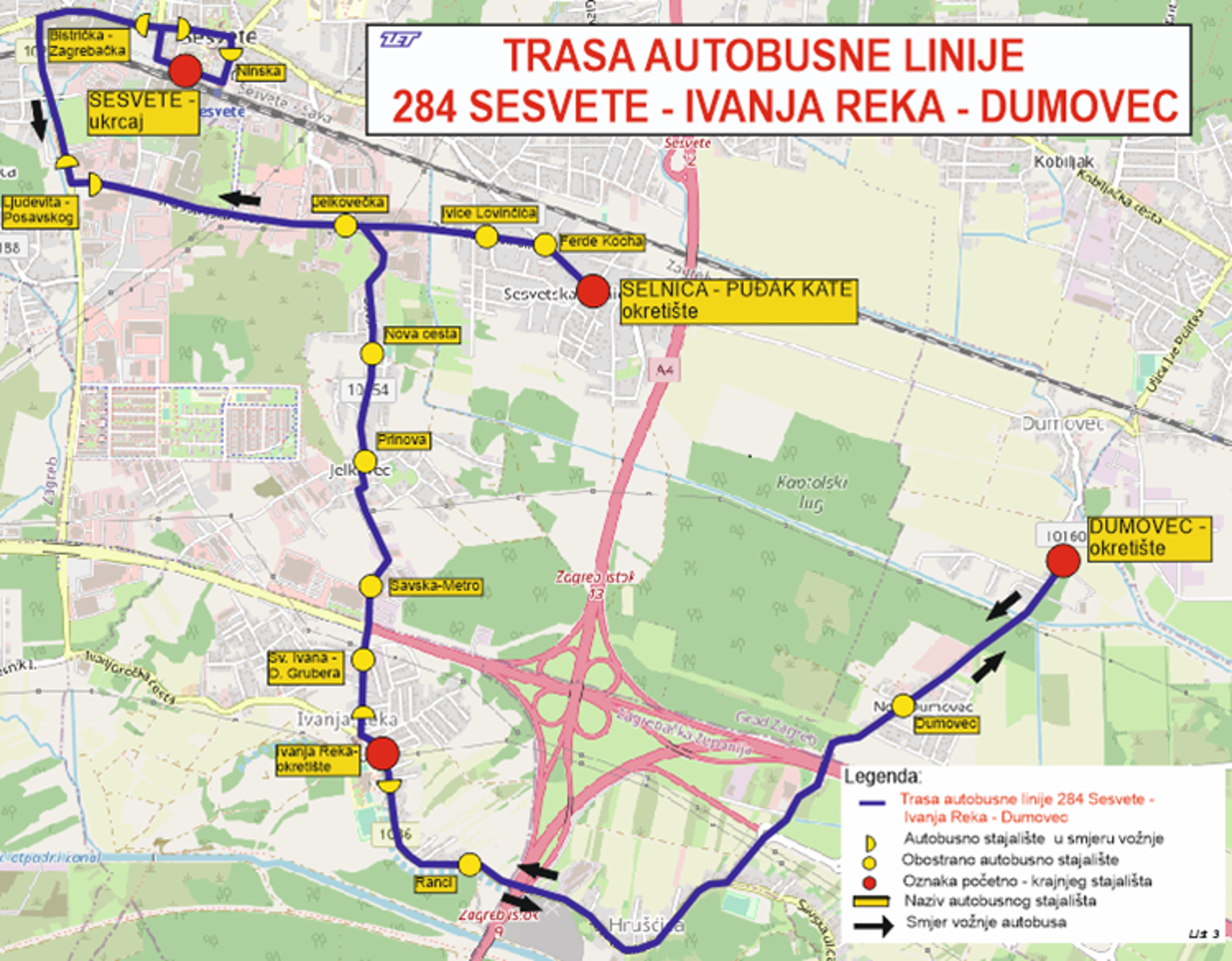 Autobusnoj liniji 284 koja vozi od Sesveta do Ivanje Reke sedam polazaka radnim danom iz Sesveta produženo je do Dumovca.