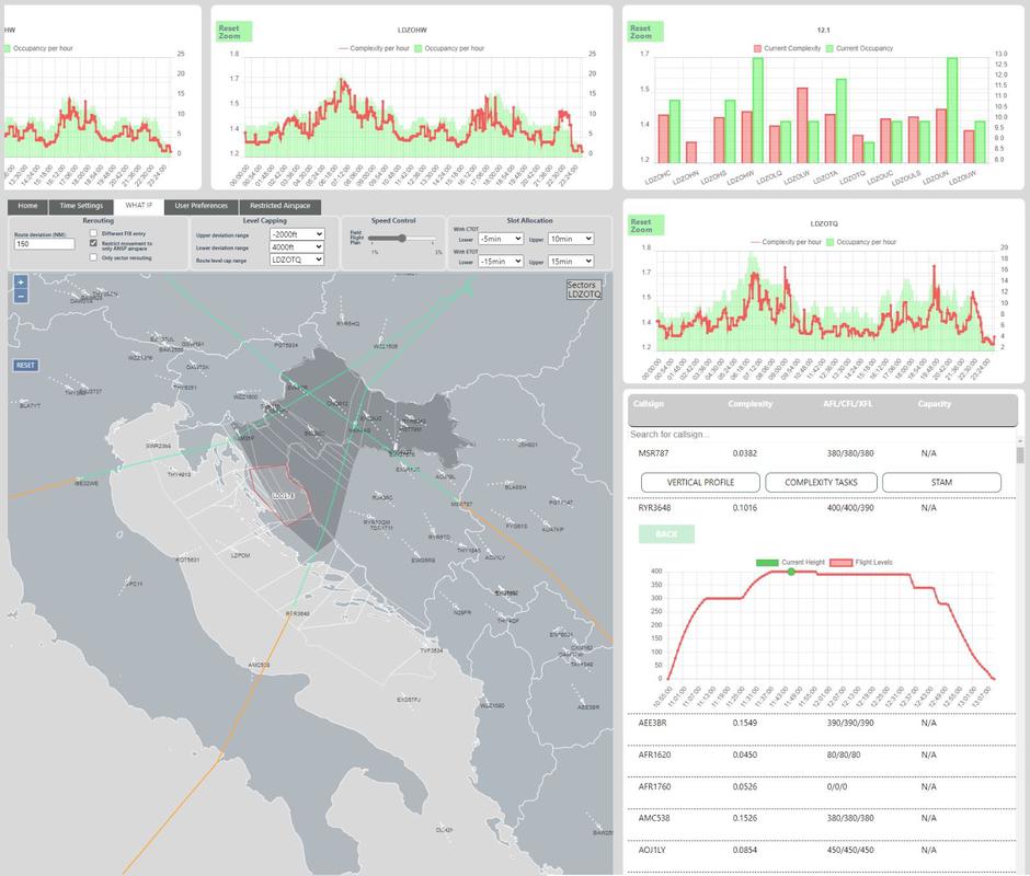 Nije ni svaka prometna situacija jednako kompleksna. Koordinirati 20 zrakoplova koji lete u istom smjeru nije jednako zahtjevno kao, recimo, četiri aviona koji lete jedan prema drugome. Nije, napominje, isto ni radi li kontrolor u tri ujutro, kad je nebo praktično prazno, ili u 14 sati, kad je promet najgušći. I tu "uskače" interaktivno sučelje i platforma za analizu kompleksnosti zračnog prometa, alat SKAI LABS-a.