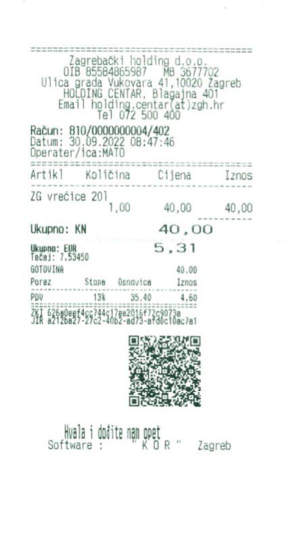 Zagrebački holding d.o.o. podružnica Čistoća izdaje račun trgovačkim lancima po njihovim naručenim količinama, odnosno po isporučenim ZG vrećicama. Stopa poreza je 13%, sukladno Zakonu o PDV-u.