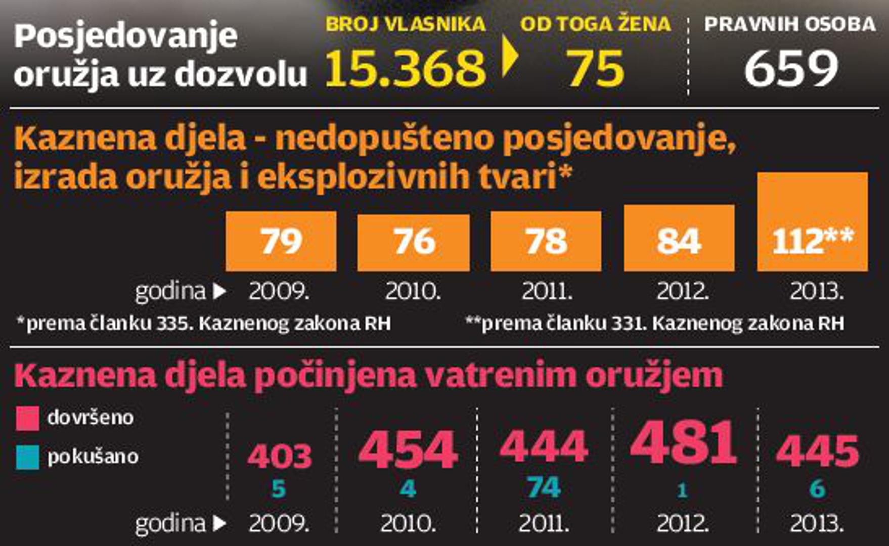 Sport, lov i samoobrana tri su razloga zbog kojih se traži dozvola za oružje, a u Zagrebu je do lipnja ove godine registrirano 15.368 civila, među kojima su i lovci, koji su to učinili. Iako su oružje dobili oni za koje se procijenilo da su psihički sposobni, te da nisu kažnjavani i agresivni, do kraja 2013. godine baš je takvim, legalnim oružjem počinjeno 445 kaznenih djela, a pokušano njih šest.