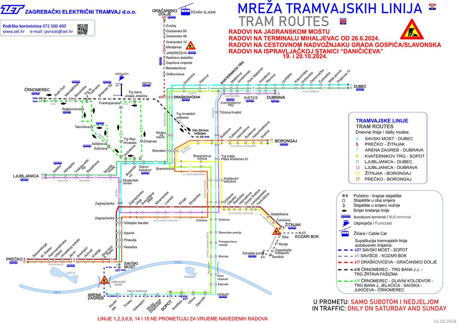 Tramvajske linije 4 i 7 prometovat će redovnim trasama. Na noćnim linijama (31, 32, 33 i 34) umjesto tramvaja vozit će autobusi. Umjesto tramvaja, zonom obustavljenog tramvajskog prometa, uspostavljaju se dvije izvanredne autobusne linije: