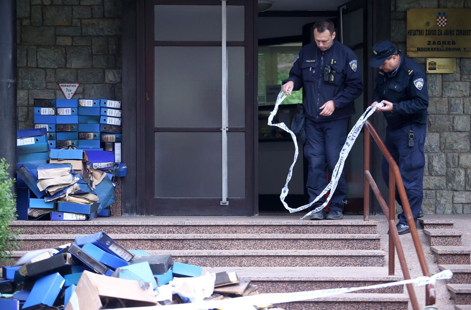 Dok je obavljao svoj zaštitarski posao, uzeo je ključ ulaznih vrata zgrade, otključao je te sišao u podrum i ondje zapalio drveni ormar u kojemu su bili arhivirani razni papiri. Potom je na isti način podmetnuo požar i u susjednoj, upravnoj zgradi HZJZ-a, gdje je zapalio registratore na drvenim policama.
