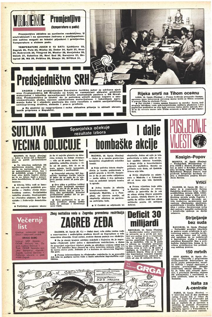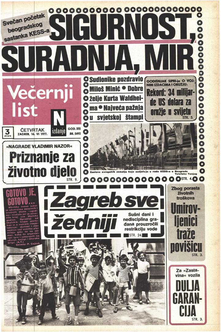 Zagreb sve žedniji, moglo se pročitati na naslovnici Večernjeg lista prije točno 45 godina. Na današnji dan, 16. lipnja 1977. godine Zagrepčanima su zbog suše uvedene restrikcije vode.