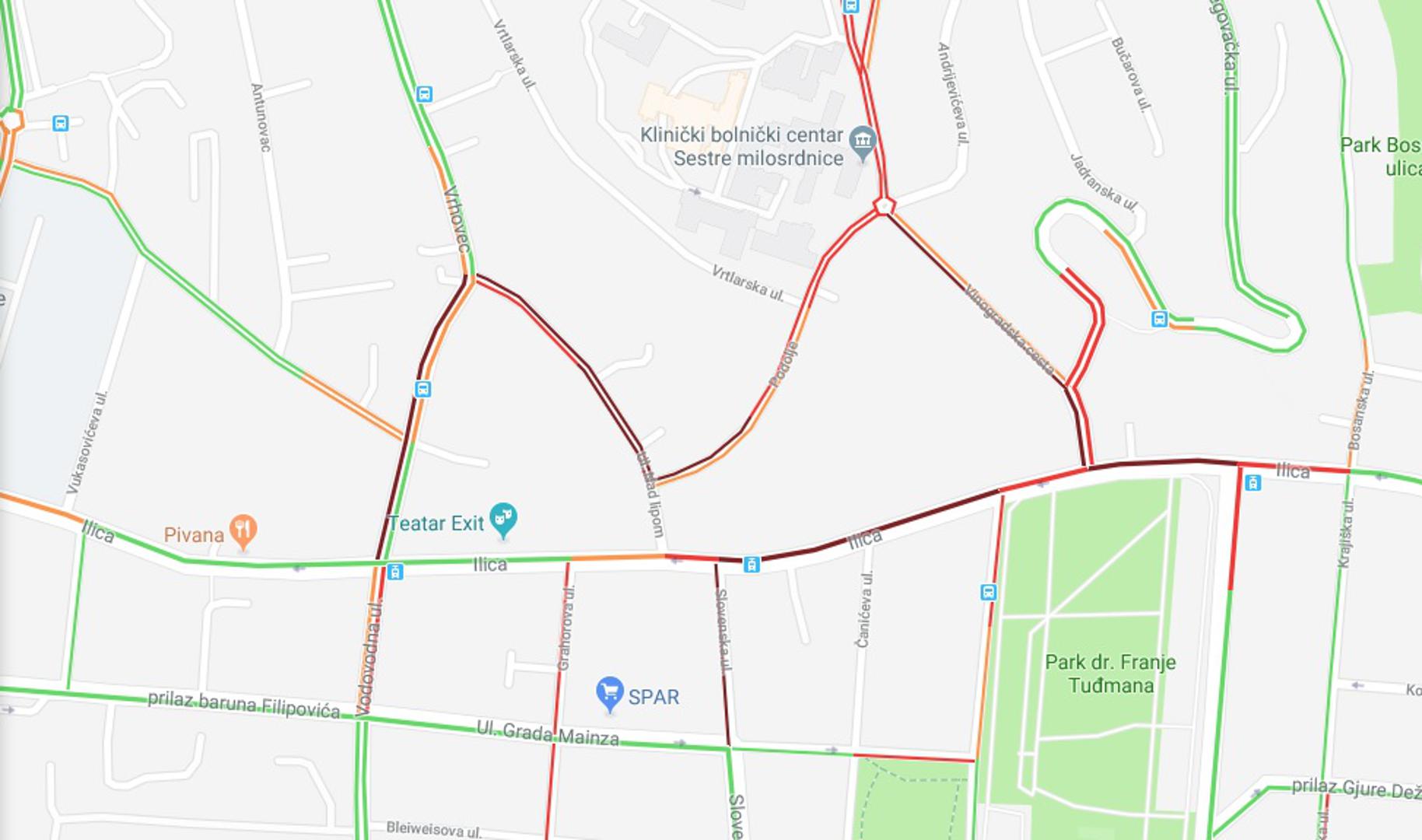 Informacije na Googleovim kartama pokazuju da je nastala velika gužva na ulicama na tom području. Ovakvo je stanje bilo oko 11.20 sati:
