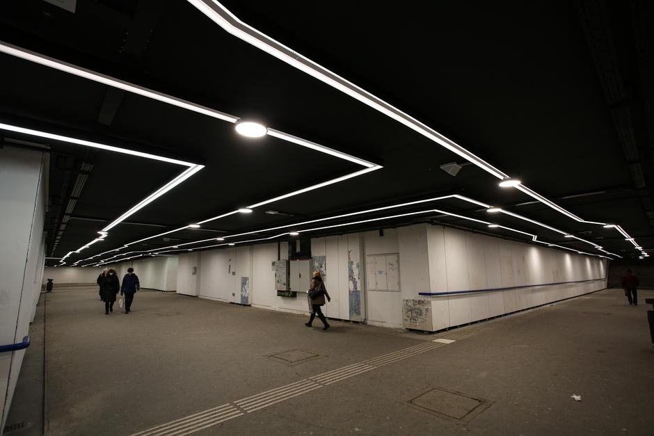 Na stropu su, naime, postavljene asimetrično izlomljene LED linije s lampama u sredini koje svijetle različitim bojama. Čas su zelene, čas plave, potom ljubičaste pa crvene, tako da se prolaznik unutra osjeća kao da promatra kakvu instalaciju u obližnjem Muzeju suvremene umjetnosti ili light show u nekom diskoklubu. Mnogi zastajkuju i neko vrijeme promatraju svjetlosnu igru iznad glava, a postala je i hit na mrežama te izazvala lavinu komentara. Ima negativnih, naravno, ali više je, uvjerili smo se i na terenu, onih pozitivnih.