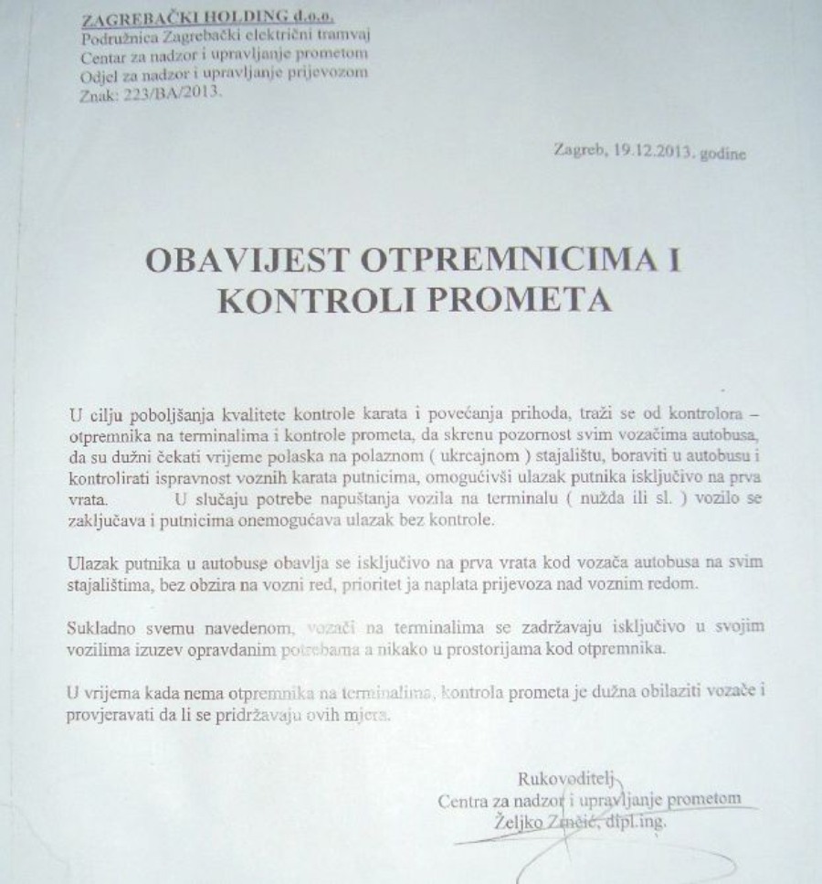 – Vozači ZET-a dobili su upute Centra za nadzor i upravljanje prometom u ZET-u po kojima moraju strože nadzirati putnike i otvarati im samo prva vrata na svim stajalištima, bez obzira na vozni red, jer je prioritet naplata prijevoza. No, ta obavijest nije upućena i putnicima kao korisnicima ZET-a, pa oni misle da je riječ o samovolji vozača – objašnjava Gočin opisujući da dolazi i do sukoba vozača s putnicima.