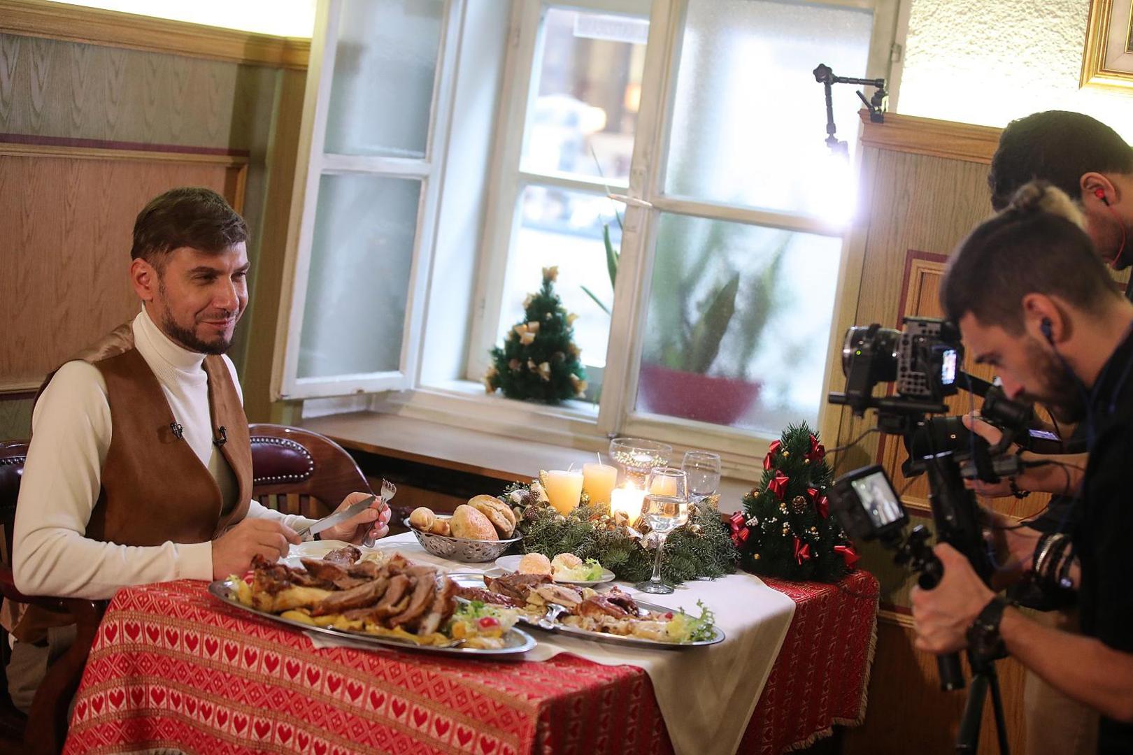 Tako su u Starom fijakeru odlučili snimiti kako se priprema tradicionalni božićni i novogodišnji ručak, pa je izbor bio očit: na stolu su se našli purica s mlincima, sarma s restanim krumpirom te palačinke s vajnšatoom. No prvo je Razigrajev zasukao rukave i s glavnom kuharicom Đurđom Bečirević provjerio kako se purica soli, dok mu je ona objasnila da se na jednak način spremala u njenoj obitelji dok je bila mala.