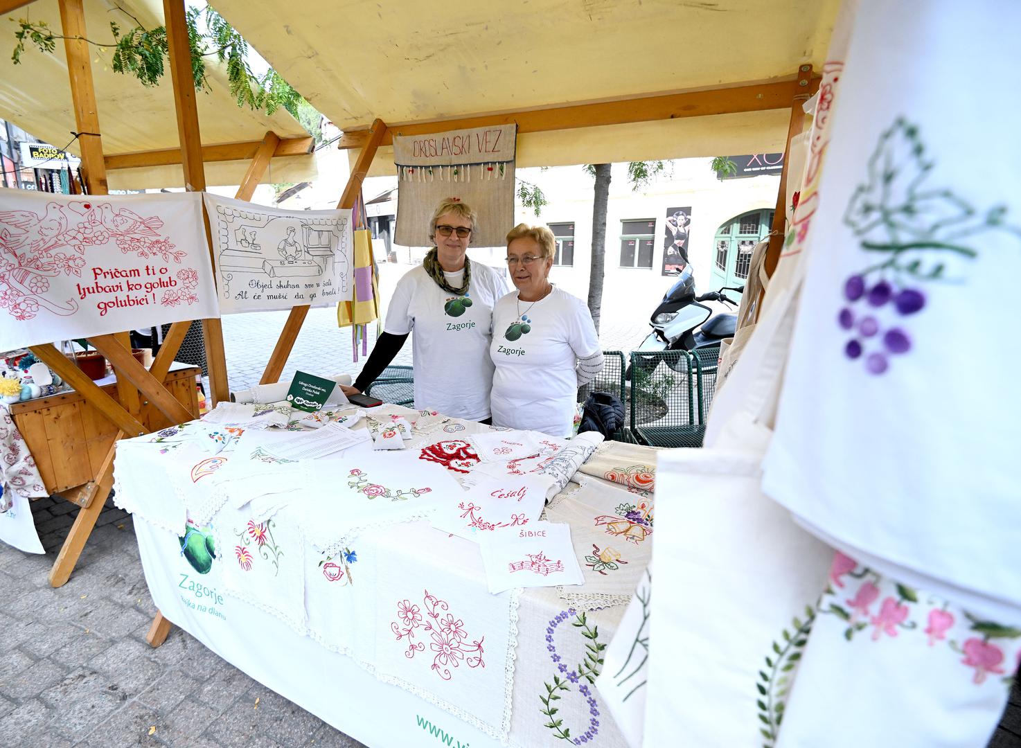Udruga Oroslavski vez već 15 godina njeguje kulturnu baštinu pa Darinka Pušek i Dragica Benko predstavljaju neke od njihovih najljepših radova, poput zidnjaka na kojima 17 članica koristeći ovjenac i konac ručno ispisuje šaljive poruke, a kupiti se mogu za 150 kuna.
