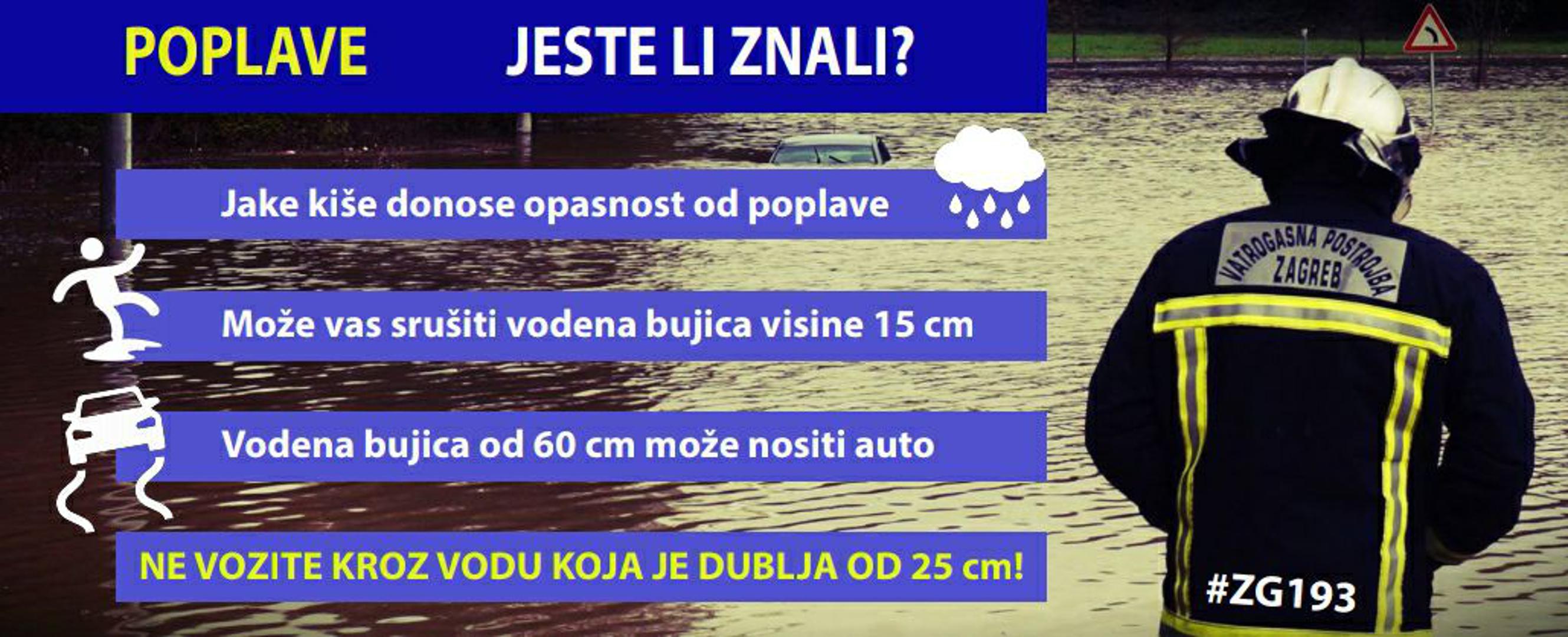Sutra bi, podsjetimo, u nekim dijelovima Hrvatske moglo pasti i više od 100 litara kiše po četvornom metru, a ovo veliko nevrijeme neće zaobići ni Zagreb. Kako piše DHMZ, većina oborine može pasti u obliku pljuskova, u kratkom vremenu, te prouzročiti urbane poplave i naglo podizanje vodostaja manjih i bujičnih vodotoka. Prije gotovo točno godinu dana metropolu je također pogodilo veliko nevrijeme, a u nizu gradskih četvrti došlo je i do poplava. Zato su zagrebački vatrogasci i ovog puta objavili važne podsjetnike koji mogu spasiti život.