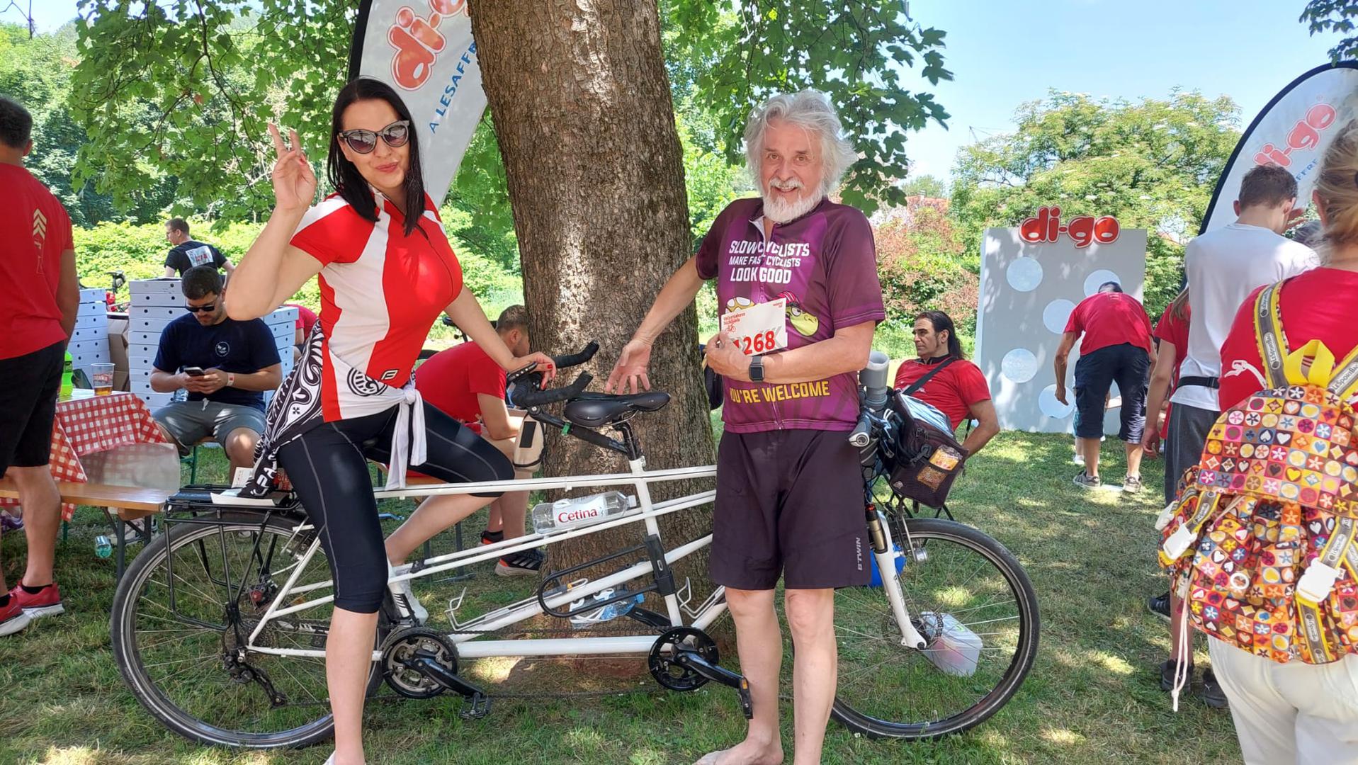 9:14 - "Spremni smo za pedaliranje, a došli smo čak iz Varaždina. Ovo je naša prva Večernjakova biciklijada. Volimo pedalirati pa se smo odlučili pridružiti. Što se tiče rute od 21 kilometar, nije nam problem. Svaki dan bicikliramo. Ipak, malo smo stariji pa se vozimo na električnim biciklima. Lakše nam je na njima, pogotovo kada dođemo do nekih uzbrdica. Veselimo se i jedva čekamo početak - malo rekreacije i druženja. A vrućine? Na biciklu nam nikada nije vruće", poručuju 64-godišnja Ana i 75-godišnji Viktor Hrgarek.