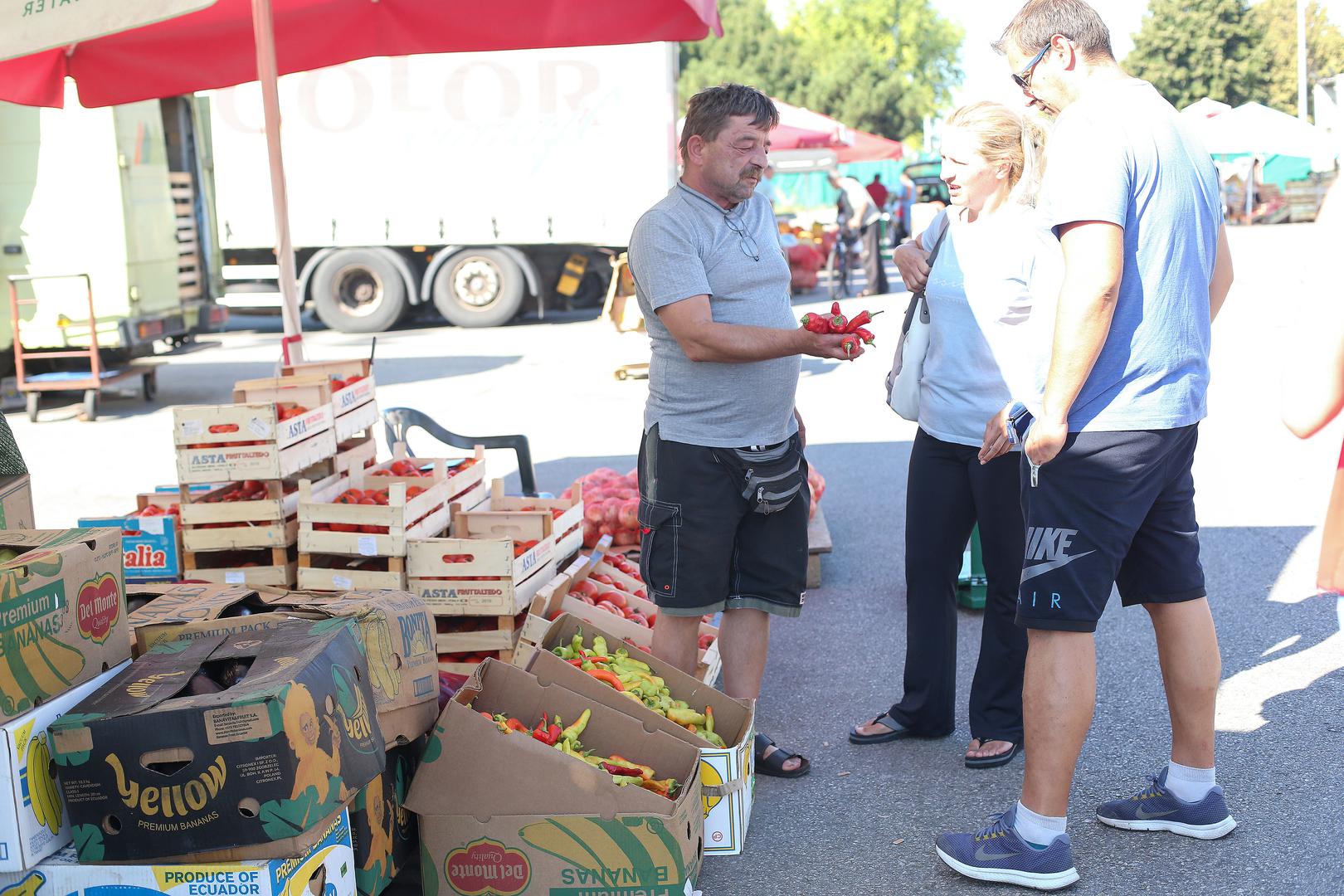 – Ma slabo idu, više podijelim nego što prodam – objašnjava nam jedan od trgovaca koji je svoje patlidžane donio iz Virovitice, dok su rog-paprike, priznaje, iz Makedonije. Žali se da posla ima manje nego proteklih godina, a najčešći kupci su vlasnici restorana koji ovdje kupuju na veliko. A da se tradicionalne kulture za zimnicu, paprike i krastavci, sve manje proizvode u Hrvatskoj, a sve više uvoze, upozorili su i iz Hrvatske gospodarske komore.