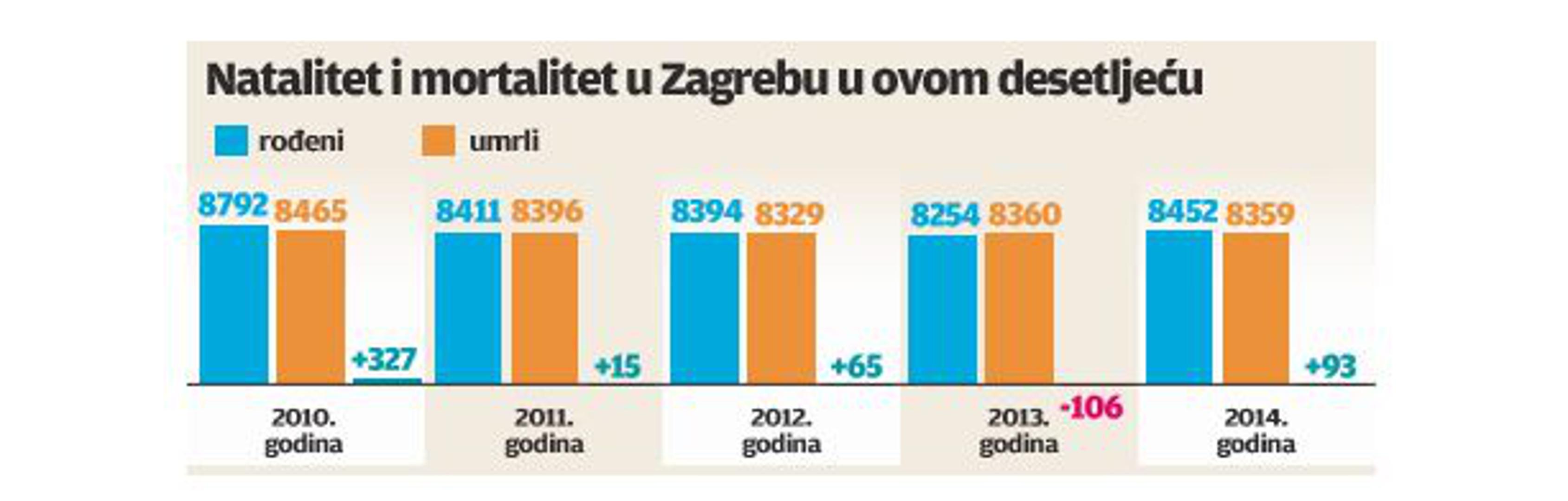 I dok statistika za cijelu zemlju pokazuje da je u Hrvatskoj natalitet u padu, u Zagrebu je u 2014. bilo 93 više rođenih nego umrlih. Najveći je to prirodni prirast od 2010., kada je iznosio 327.