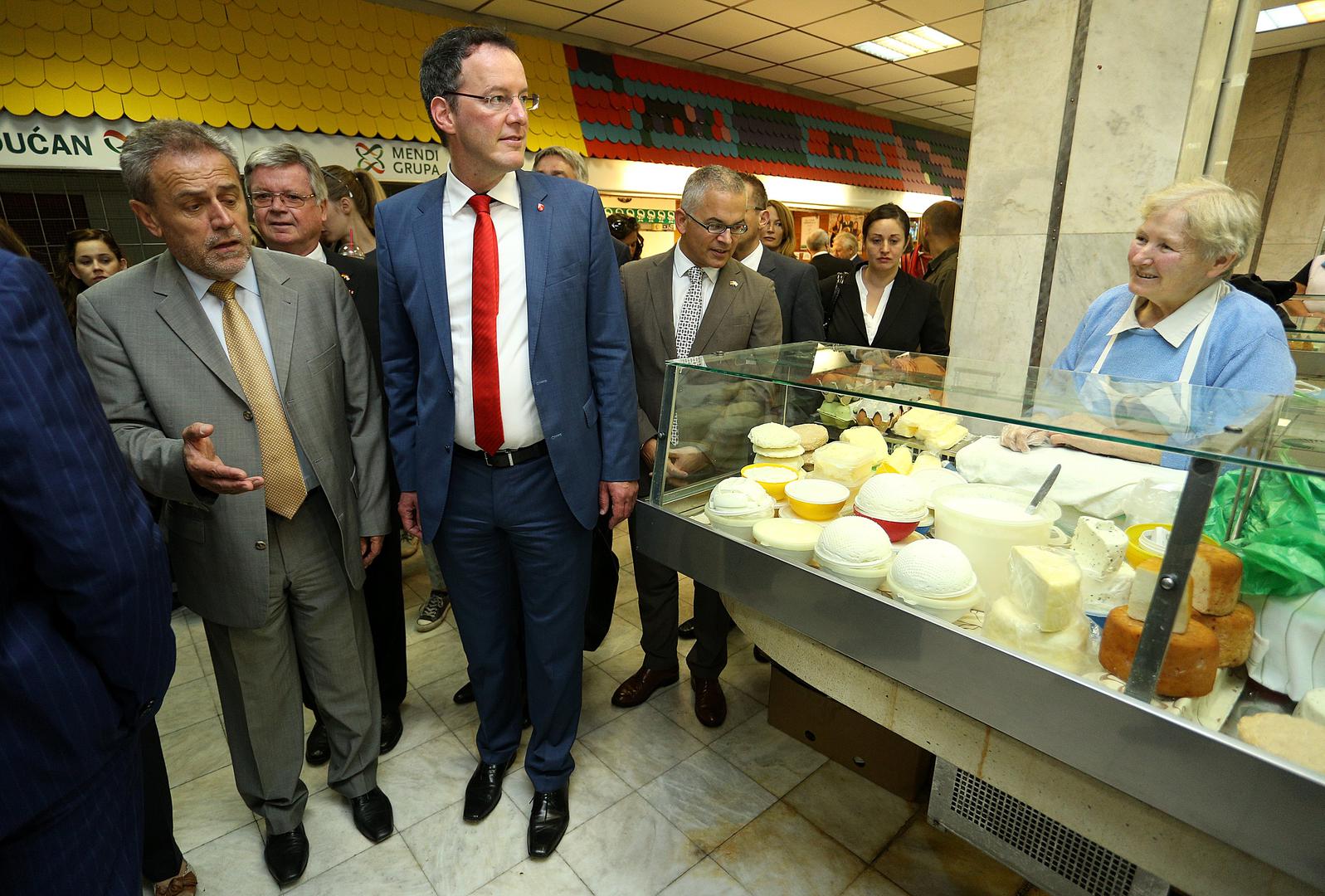 Obišli su i zatvoreni dio tržnice, a gradonačelnik Bandić njemačkoj delegaciji, u kojoj su uz gradonačelnika Mainza bili i renomirani njemački kuhar Johann Lafer te hrvatski akademik kulinarstva Branko Ognjenović, na dar je kupio šešir.