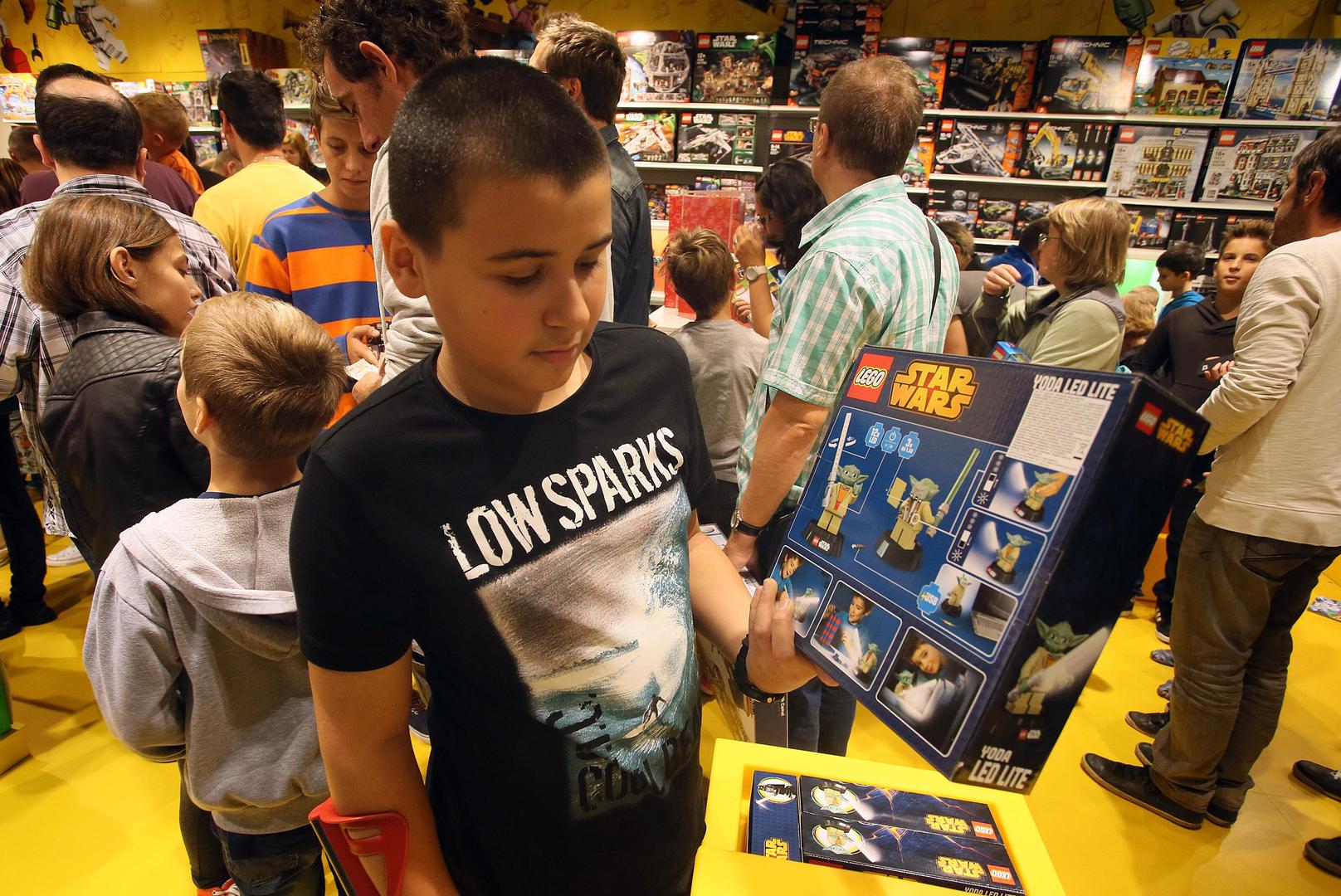 Duže od dva sata kupci nestrpljivo čekaju na ulaz u prvu Lego trgovinu u Hrvatskoj koja je otvorena jutros u 11 sati u šoping centru Arena. Ljubav prema lego kockicama tako je bila jača i od gužve iz koje je do sada već nekoliko tisuća kupaca izašlo sa željenom kutijom svojih igračaka.
