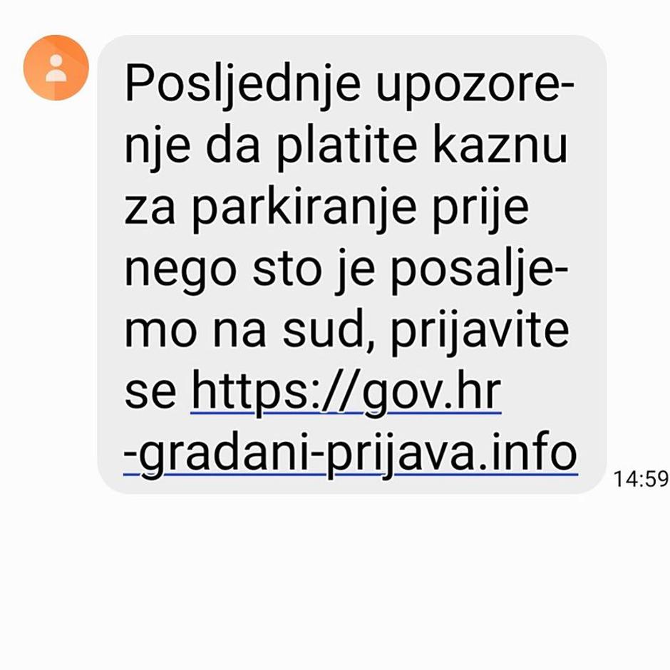 U objavi uz fotografiju SMS-a upozorava se tako sugrađane da ukoliko zaprime poruku ovakvog ili sličnog sadržaja nikako ne otvaraju link jer poruka, ističu, nema nikakve veze sa Zagrebačkim holdingom, a u poruci stoji: "Posljednje upozorenje da platite kaznu za parkiranje prije nego što je pošaljemo na sud..."