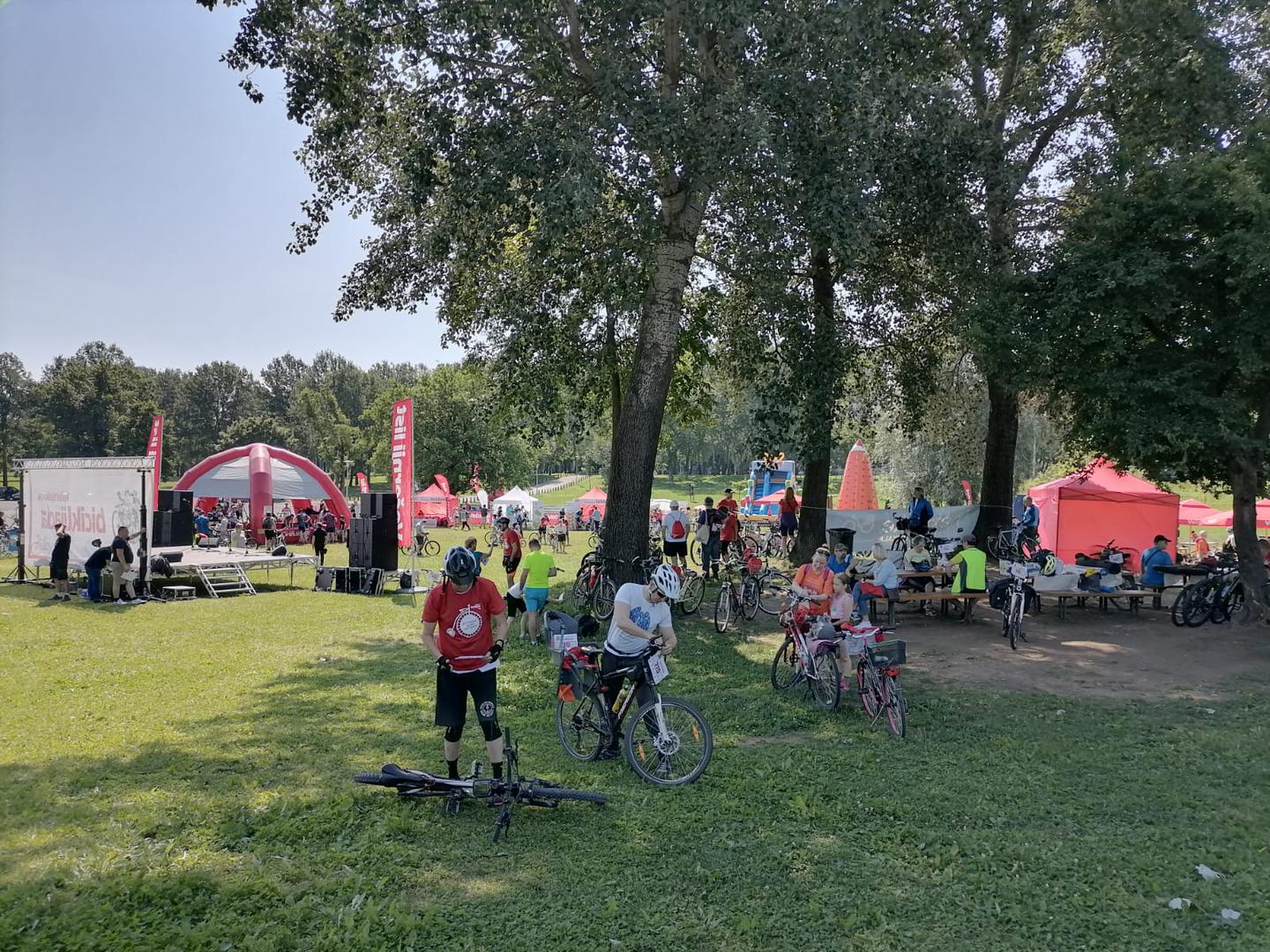 12:18 - Posljednji su vozači stigli na cilj. A dok odmaraju i okrjepljuju se gastro kutku, Zagrebačke mažoretkinje publiku su oduševile svojim nastupom. Atmosferu zagrijava DJ GoDJi, a svi su veselo raspoloženi. Dok roditelji uživaju u razgovoru i druženju, klinci se zabavljaju u kutku gdje imaju napuhance, dječje kino i tobogan koji je ondje postavila tvrtka Maskote.hr. Sunčano i lijepo vrijeme poslužilo je ljubitelje pedaliranja na osam kilometara dugoj ruti koja im je bila, složili su se, "mačji kašalj".