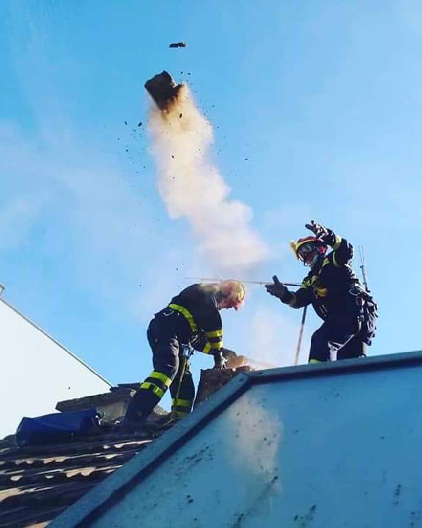 Vatrogasci iz DVD-a Prečko, pak, pohvaili su se jutros kako su usred potresa uspješno uklonili dva dimnjaka koja su prijetila da se uruše u potkrovlje doma peteročlane obitelji.