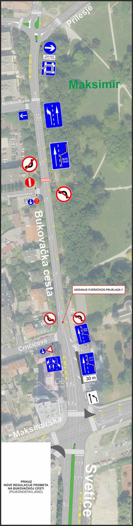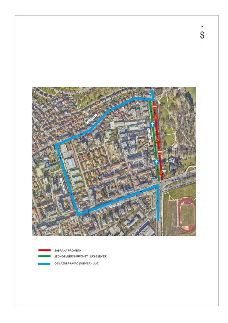 - U smjeru juga, promet Bukovačkom cestom odvijat će se jednim prometnim trakom na zapadnoj strani sve do raskrižja sa Crnčićevom ulicom