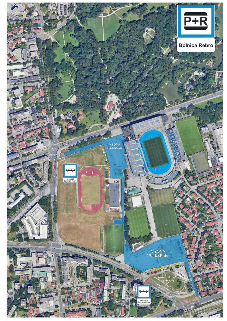 P&R koji postoji u nizu drugih gradova u Europi i ovdje će funkcionirati na isti način. Parkirate automobil kod stadiona i kupite dnevnu kartu od 2.3€, a u cijeni te karte uključen vam je i prijevoz autobusnom linijom 228 koja će biti produžena na način da će voziti s terminala Borongaj, umjesto od Svetica do bolnice Rebro.