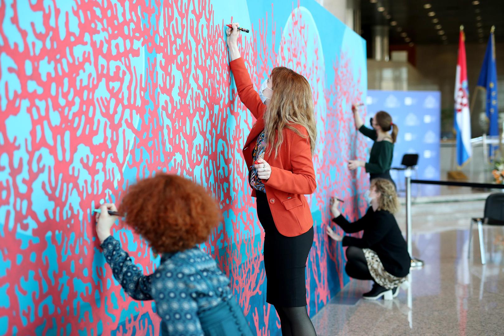 22.02.2022., Zagreb - Svecanost obiljezavanja Dana Nacionalne i sveucilisne knjiznice u Zagrebu i 415. godisnjice njezina postojanja. Izrada murala posvecen 100. obljetnici rodenja Vesne Parun. Photo: Igor Kralj/PIXSELL
