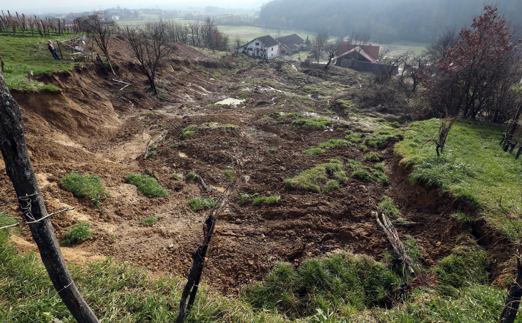 Riječ je o klizištu od 50-ak metara koje je nastalo zbog kombinacije suša u posljednje dvije godine zbog čega se zemlja rasporila, a potom su oborine ušle dublje u zemlju i odnijele dobar komad parcele.