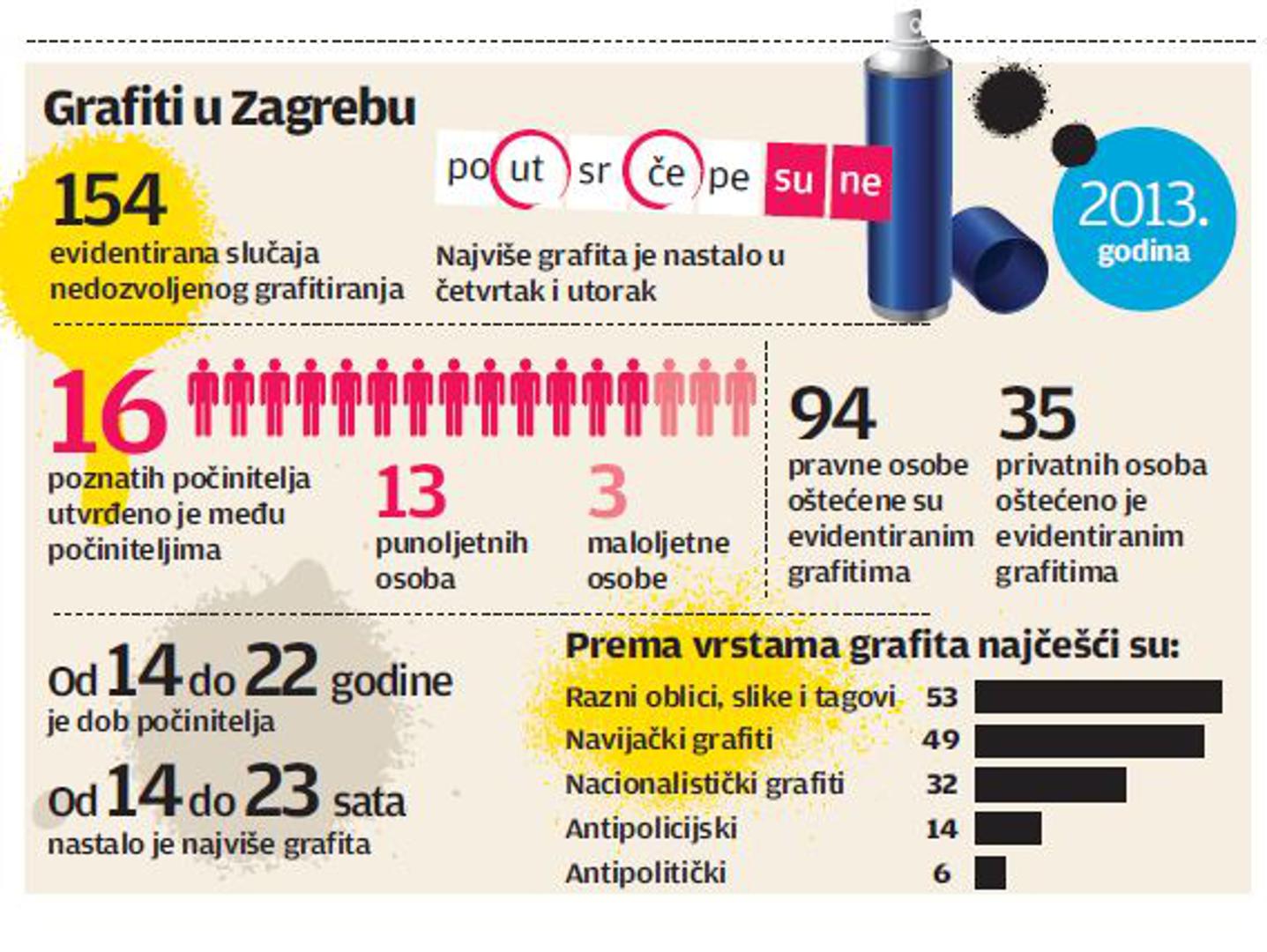 Ljubavne izjave, prijetnje, prozivke, sve su to poruke grafitera koji često svoje mišljenje izraze na fasadama i tako naprave štetu. Boriti se protiv njih teško je, počinitelji se rijetko pronađu i kazne, a prema istraživanju Instituta za turizam, od 1832 ispitana stranca njih dvije trećine ističe grafite kao jedan od najvećih nedostataka grada.