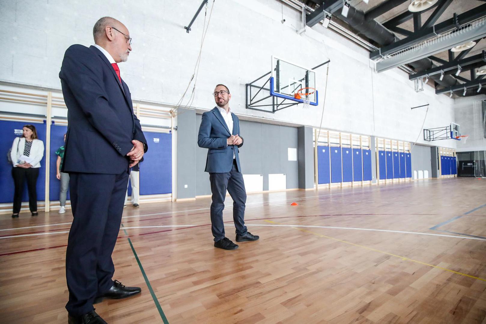13.09.2022., Zagreb - U osnovnoj skoli Ksavera Sandora Gjalskog gradonacelnik Grada Zagreba Tomislav Tomasevic, zamjenica Danijela Dolenec, Luka Korlaet i ravnatelj skole Mario Keca odrzali su konferenciju za medije na temu zavrsetka radova na cjelovitoj obnovi i dogradnji skole. Photo: Slavko Midzor/PIXSELL Photo: Slavko Midzor/PIXSELL