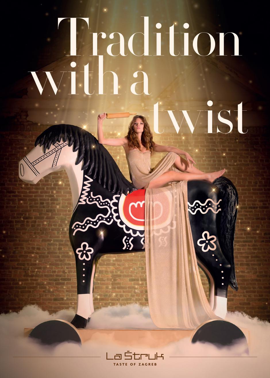 Vrlo je brzo La Štruk postao međunarodno poznat i omiljen među brojnim turistima koji dolaze u Zagreb. Došlo je vrijeme i za novu kampanju za ovaj popularni zagrebački restoran. No, umjesto da njihove nove plakate krase prizori hrane, odnosno štrukli, odlučili su se za nešto drugo. La Štruk se kroz bajkovite plakate odlučio odati počast tradiciji zagorsko zagrebačkog područja, kao što su drveni zagorski konj, licitarsko srce, šestinski kišobran, ali sve prikazano u suvremenom duhu. Autor fotografija je Sanjin Kaštelan, a ispred kamere se u raznolikim zahtjevnim ulogama odlično snašla Claudia Antičević, poznati hrvatski model sa svjetskom karijerom. Kreativni produkcijski tim su upotpunili Ana Toto (kostimi), Tatjana Tomšić (make-up i frizura), Jurica Ester (glavni producent), Saša Perić (art director) te Igor Mladinović kao autor ideje i kreativni direktor.