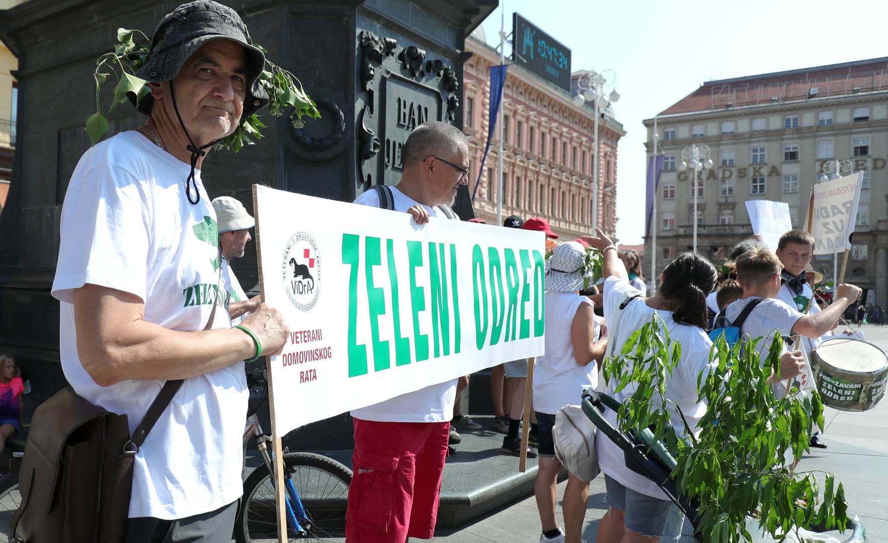 Na Trgu bana Jelačića okupili su se članovi udruge Zeleni odred koji prosvjeduju protiv devastacije Medvednice.