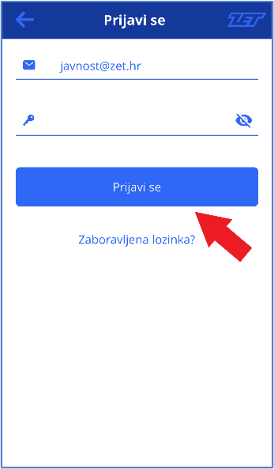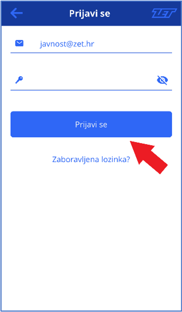 Na početnom zaslonu odaberite „Prijavi se“ te unesite svoje korisničke podatke: adresu e-pošte i lozinku. U aplikaciji ostajete prijavljeni sve dok ne odaberete odjaviti se iz aplikacije. Aplikacija ne mora stalno biti prikazana na zaslonu uređaja.