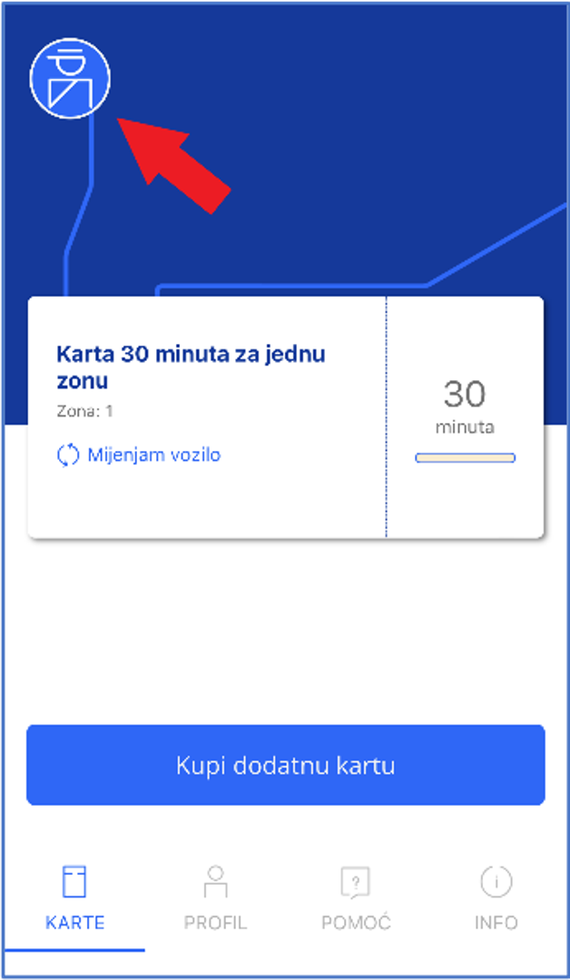 Na zaslonu "Karte" odaberite opciju "Kupi kartu". Aplikacija će na zaslonu prikazati sve dostupne karte za područje u kojem se nalazite. Odabirom željene karte pokreće se postupak očitavanja QR koda. Usmjerite kameru svog uređaja prema QR kodu koji se nalazi u vozilu. Potrebno je aplikaciji dopustiti pristup kameri uređaja. U slučaju kupnje više karata na zaslonu "Karte" odabrati opciju "Kupi dodatnu kartu" te ponoviti postupak odabira karte i očitavanja QR koda za svaku dodatnu kartu. Kupnju karata moguće je obaviti i putem NFC-a prislanjanjem mobilnog uređaja na spomenute naljepnice s QR kodom ako je mobilni uređaj opremljen takvom tehnologijom.