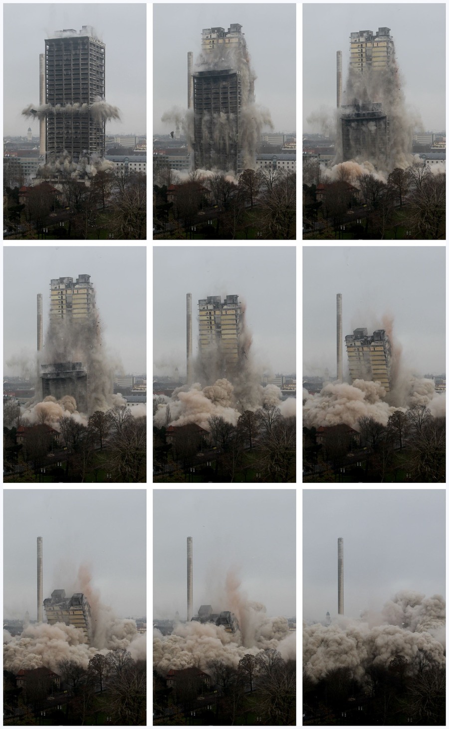 Za rušenje je bio zadužen stručnjak za eksplozive Eduard Reisch. Oko zgrade su podignute šest metara visoke ograde kako okolne zgrade ne bi bile oštećene, a sa zgradom su razneseni i spremnici s vodom kako eksplozija ne bi proizvela previše prašine.